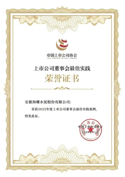 2025年11月18日,中國上市公司協(xié)會在北京召開了第三屆理事會第六次會議和2025上市公司可持續(xù)發(fā)展大會,大會舉行了“2025董事會最佳實(shí)踐案例”“2025可持續(xù)發(fā)展最佳實(shí)踐案例”發(fā)布儀式,海螺水泥同時(shí)榮獲“2025董事會最佳實(shí)踐案例”和“2025上市公司可持續(xù)發(fā)展最佳實(shí)踐案例”。