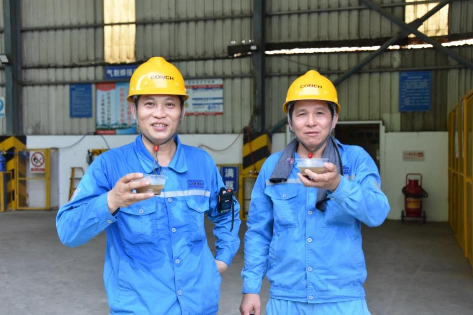 礦山分廠維修工段里,機(jī)器轟鳴如激昂樂(lè)章。剛完成一輪設(shè)備檢修的兩位員工,額角掛著晶瑩汗珠,臉上卻漾著輕快笑意,因?yàn)樗麄兪盏搅斯舅蛠?lái)的“清涼”。車間熱浪裹挾著機(jī)械聲撲面而來(lái),當(dāng)精心熬制的綠豆湯遞到手中,清甜滋味瞬間漫開(kāi),干渴與疲憊被一并驅(qū)散。“喝完后,干活更有勁兒!”一位員工笑著感慨,樸實(shí)話語(yǔ)里滿是被關(guān)懷的暖意,也道出所有一線勞動(dòng)者的心聲。