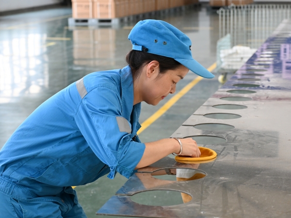 在銅陵環(huán)境的濾袋生產(chǎn)線上,質(zhì)檢員正進(jìn)行每日的巡檢。她隨手抽檢一條剛生產(chǎn)的半成品,邊測量邊向身旁的新同事解釋道:“你看,從半成品到成品出庫,我們?cè)O(shè)了“半成品過程檢+成品入庫檢+產(chǎn)品發(fā)運(yùn)檢”三重質(zhì)量防線,我這第一關(guān)最關(guān)鍵。”她指向?qū)崟r(shí)更新的數(shù)據(jù)看板,“像幅寬這種關(guān)鍵尺寸,現(xiàn)在控制得越來越準(zhǔn),所以整體的廢品率才能穩(wěn)定控制在5.58%,好質(zhì)量才是咱們最大的底氣”。