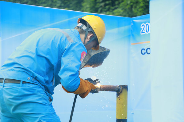 焊接與氧割操作賽區(qū),弧光閃爍,焊花四濺。選手們全神貫注,手持焊槍,穩(wěn)穩(wěn)地對準工件接口。面罩下,是他們銳利而專注的眼神。這不僅是力量與技巧的結(jié)合,更是耐心與經(jīng)驗的沉淀,每一朵焊花都在雕琢著“鋼鐵裁縫”追求極致的匠心。