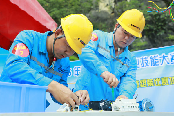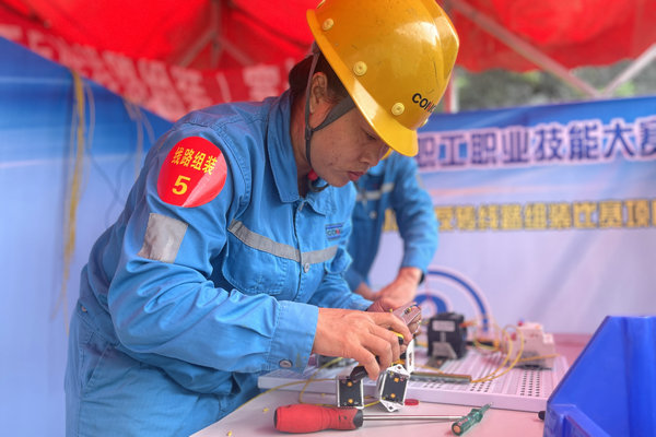 電氣線路組裝賽場,看似平靜卻充滿了緊張的氣息。選手們面對復(fù)雜的電氣元件和線路圖,沉著冷靜。一位女電工手指翻飛,剝線、接線、固定,動作行云流水。紅、綠、黃各色導(dǎo)線在她手中仿佛被賦予了生命,精準地連接在接觸器、繼電器和端子之間。