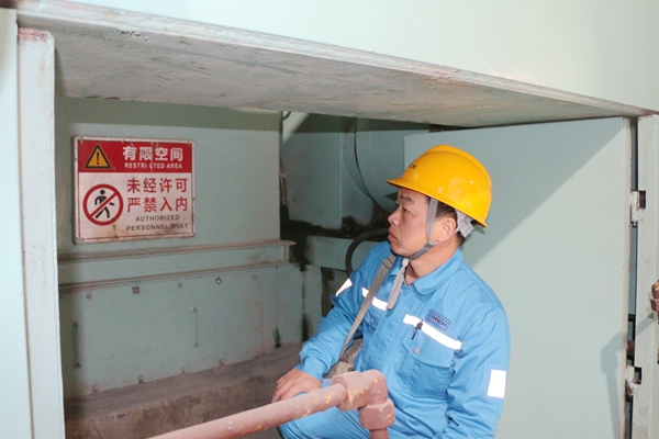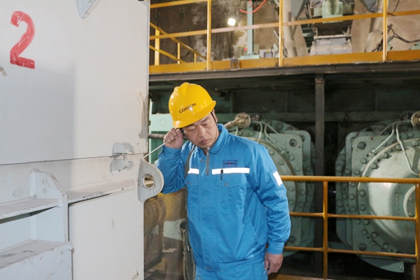在這之后,孫林通的目光和腳步,先后三次回到這個(gè)位置。他俯身觀(guān)察,對(duì)比記錄,確認(rèn)滲水量雖然很小,但卻在持續(xù)地增加。他深知任何的疏忽或僥幸,都可能讓隱患在“再觀(guān)察一下”的拖延中升級(jí)。清晨六點(diǎn),當(dāng)滲水現(xiàn)象已轉(zhuǎn)為清晰可見(jiàn)的細(xì)流時(shí),孫林通果斷拿起對(duì)講機(jī),向上級(jí)進(jìn)行了清晰、準(zhǔn)確地匯報(bào):“4#輥壓機(jī)動(dòng)輥有載端滲水加劇,疑似內(nèi)部構(gòu)件異常,請(qǐng)設(shè)備人員立即現(xiàn)場(chǎng)確認(rèn)!”